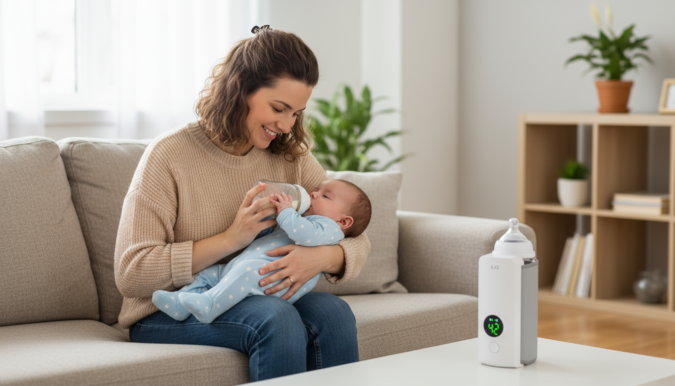 D’un simple clic, votre bébé retrouve le confort d’un lait parfait, sans micro-ondes ni branchement.